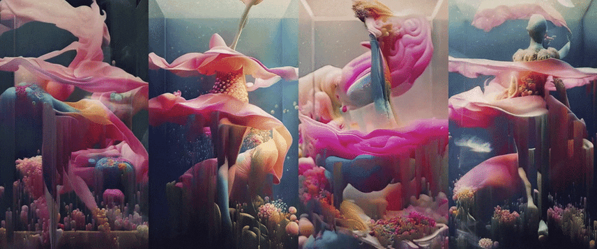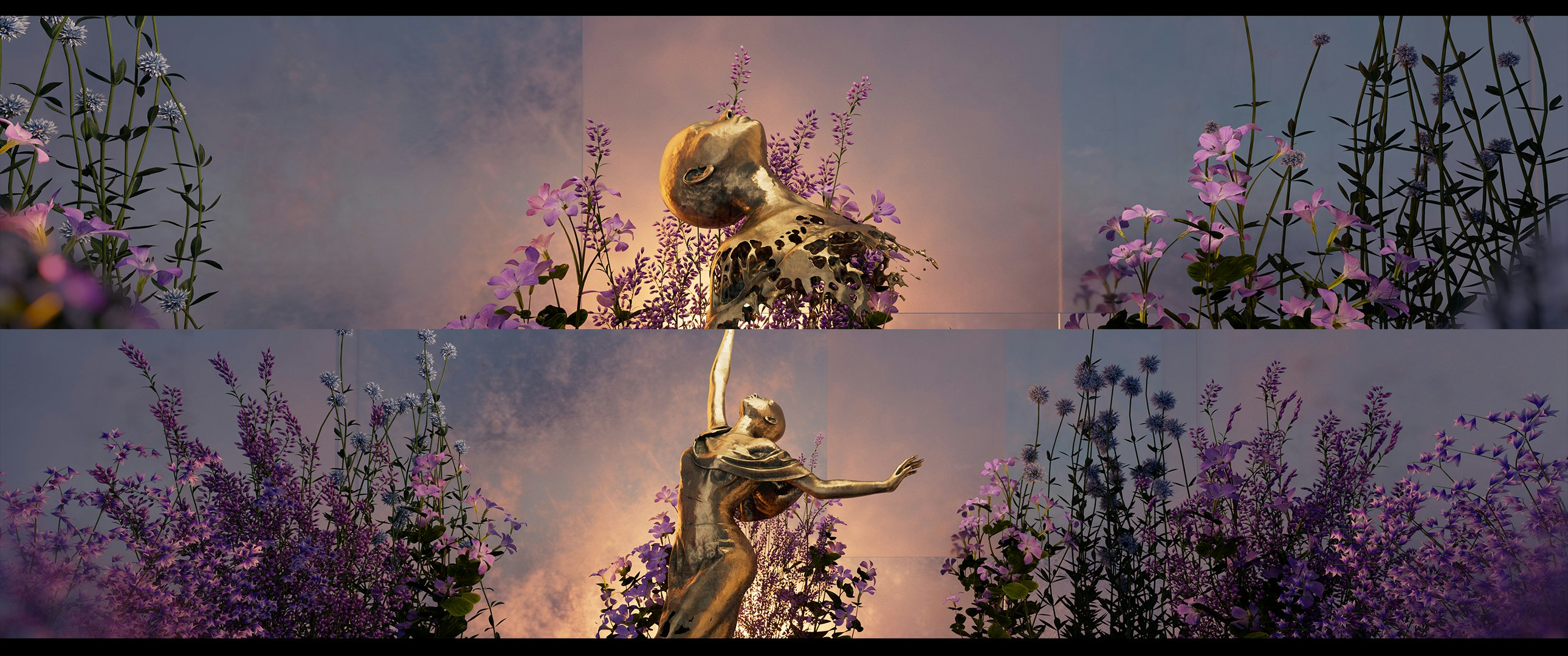 The Main Wall direction was to merge Ai into a working 3D motion pipeline. Simultaneously blending the two in a fluid as possible unison, and fully transitioning into an Ai takeover for the ending.