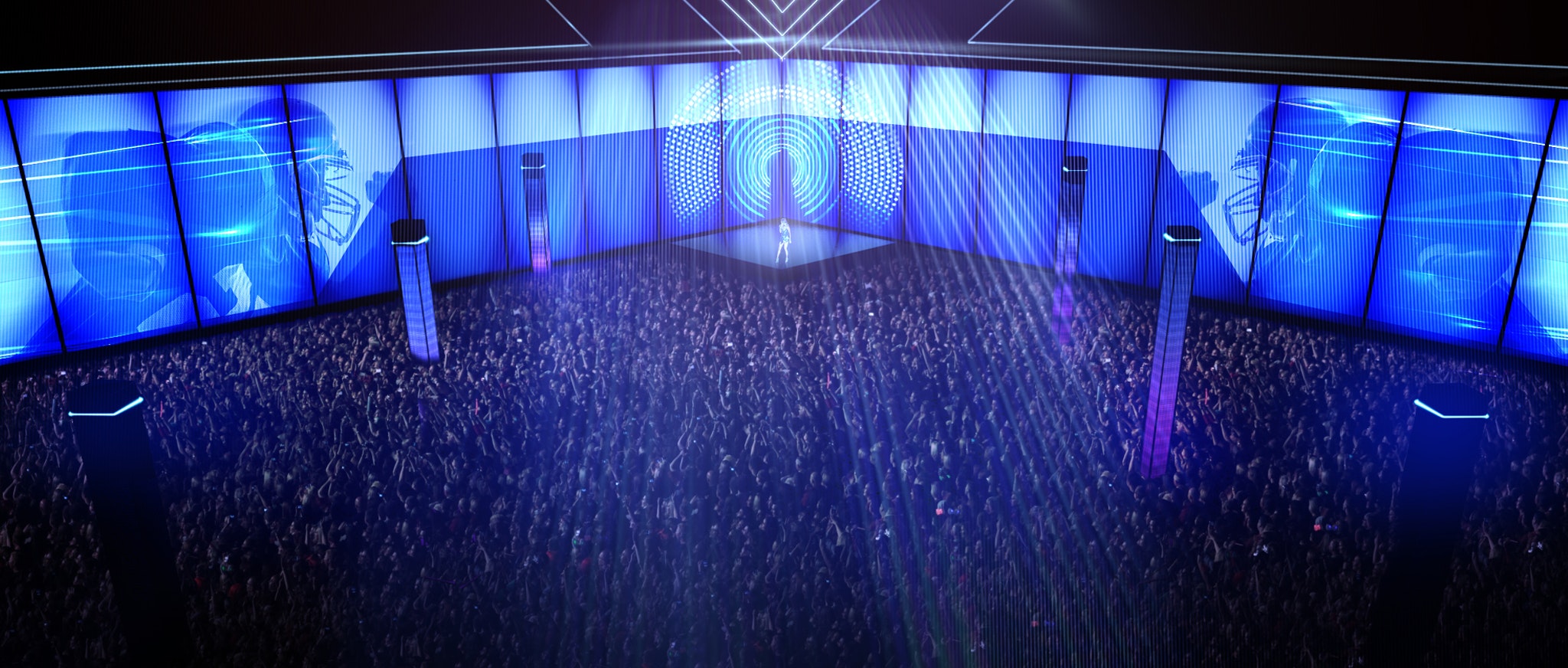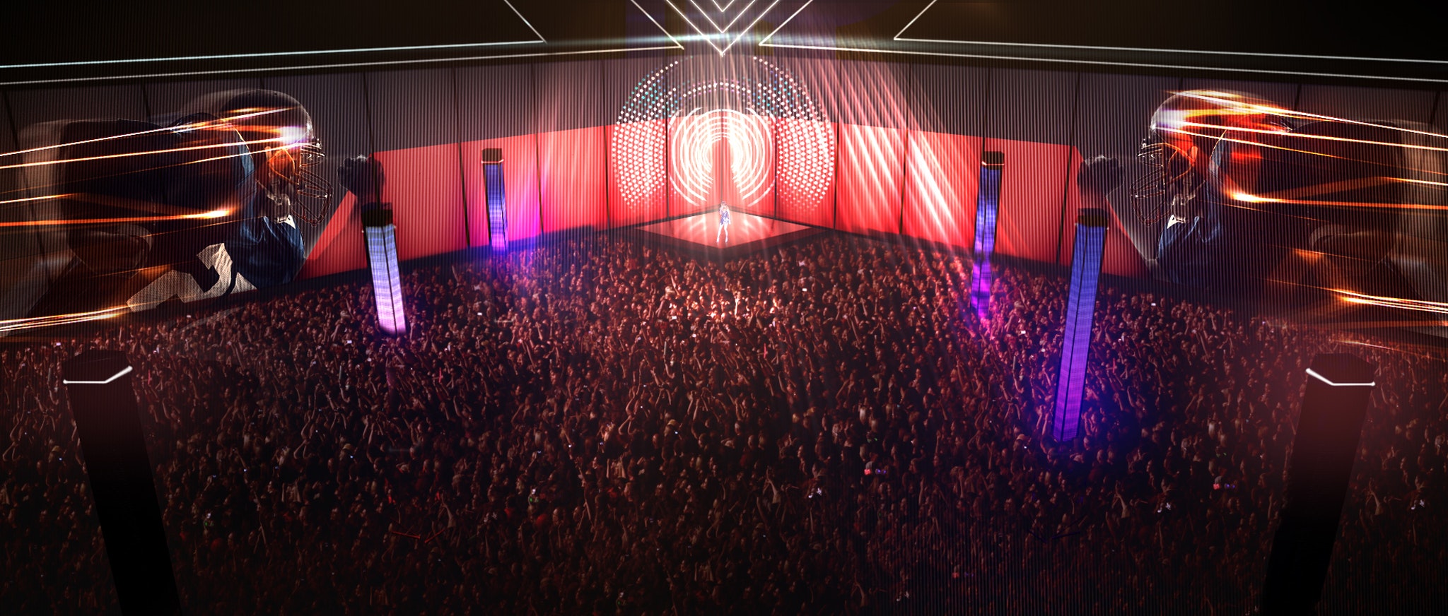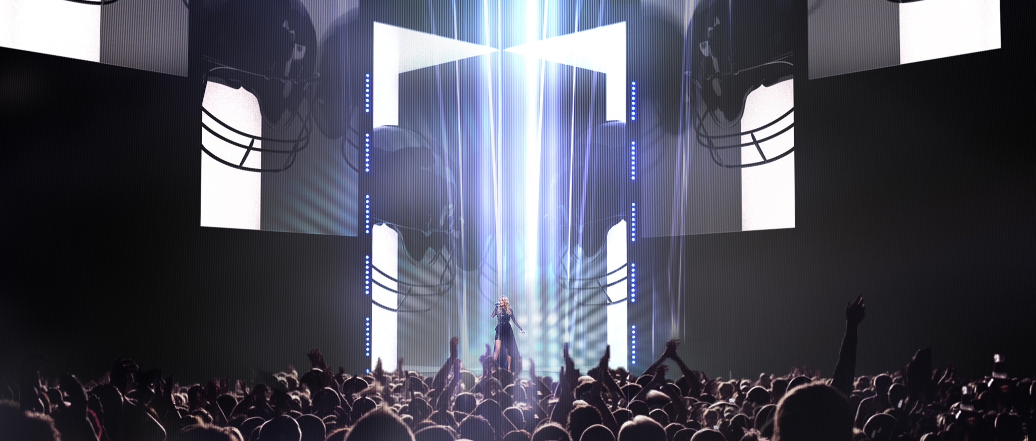 The concept I brought to the table with parallax pillar reveals, and use's of lasers for Show Opener.