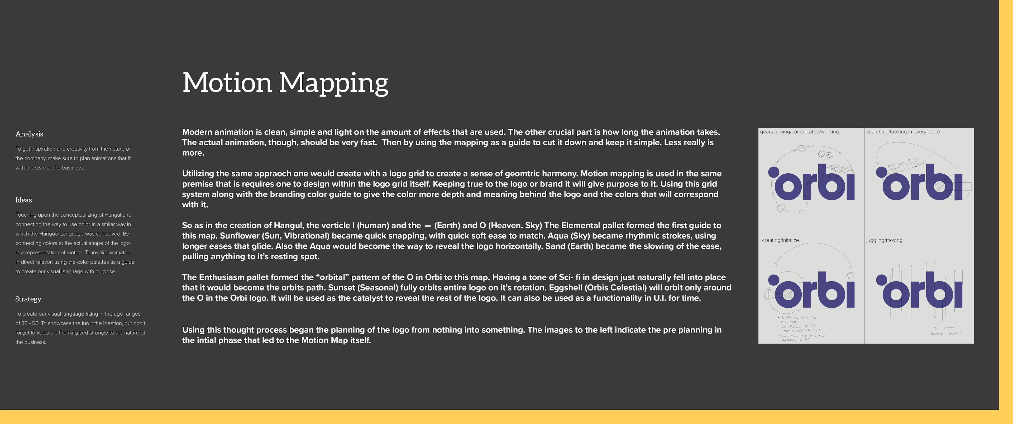 1) Motion Mapping - Focusing on dynamics of logo in relation to the mechanics written below and following into the logo presentations.